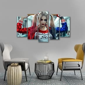 Quadro Decorativo Arlequina Varias Peças Para Sala e Quarto Impressão nas laterais. Montado em chassi de madeira com os grampos na parte de trás do quadro, Conferindo um melhor acabamento. 5 PEÇAS Cada peça tem as seguintes medidas: 2 quadros 50x20 cm 1 quadro 60x20 cm 2 quadros 40x20 cm Espessura 2 cm Impressão digital em tecido de quadro canvas QUALIDADE 100% Impressão fotográfica com tintas ecologicamente correto, nossa empresa se preocupa com o meio ambiente. As laterais já vão impressa pronto para por na parede sem necessidade de moldura. Ean: 7908245605581