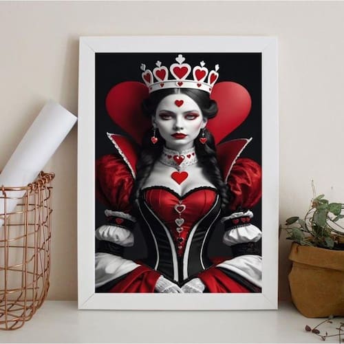 Quadro decorativo arquétipo rainha copas 45x34cm - com vidro Moldura: madeira preta Informações do produto tire todas as suas dúvidas no descritivo abaixo: decoração para quarto, sala, cozinha, escritório, área gourmet e muito mais. Chega de paredes vazias medidas - cada peça tem 45x34cm a3 . Material do papel - papel fotográfico brilhante de altíssima resolução acabamento - todos os quadros são acompanhados de vidro para proteção da imagem. - moldura em madeira maciça na cor preta ou branca conforme produto escolhido e pendurador . - os quadros são embalados de forma segura com plástico bolha com camada dupla de acordo com o tamanho dos quadros. Garantia - garantia de 3 meses. Meu quadro chegou. Como posso fixá-lo Você precisa apenas de um martelo e um prego, pois os quadros já vão acompanhados de penduradores. Esta é a forma mais indicada. Como posso limpar meu quadro A limpeza é feita como um móvel comum da sua casa. Apenas um pano seco ou espanador são suficientes para tal
