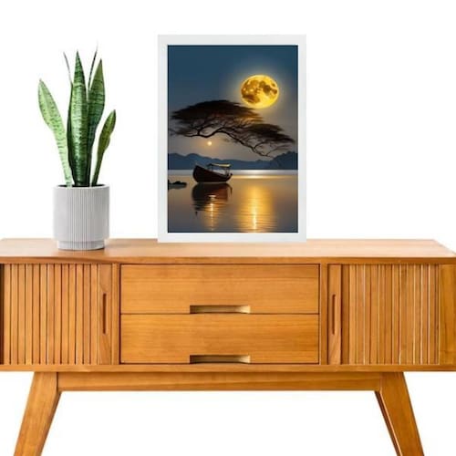 Quadro decorativo arte barco rio lua cheia 24x18cm Cor: moldura branca Informações do produto tire todas as suas dúvidas no descritivo abaixo: decoração para quarto, sala, cozinha, escritório, área gourmet e muito mais. Chega de paredes vazias medidas - cada peça tem 24x18cm a5 . Material do papel - papel fotográfico brilhante de altíssima resolução acabamento - todos os quadros são acompanhados de uma película de acetato para proteção da imagem. - os quadros são embalados de forma segura com plástico bolha com camada dupla de acordo com o tamanho dos quadros. - de 3 meses. Meu quadro chegou. Como posso fixá-lo Você precisa apenas de um martelo e um prego, pois os quadros já vão acompanhados de penduradores. Esta é a forma mais indicada. Caso prefira, você pode utilizar uma fita dupla face neste caso, sugerimos de alta qualidade para evitar que descole e seu quadro caia . Como posso limpar meu quadro A limpeza é feita como um móvel comum da sua casa. Apenas um pano seco ou espanador são suficientes para tal