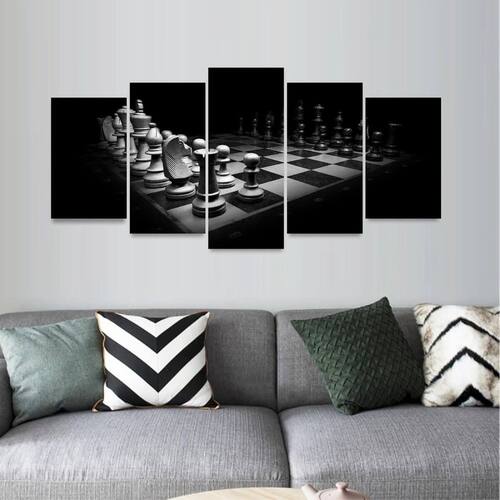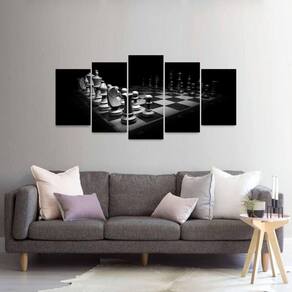Especificações: Quadro decorativo Mosaico de 5 Peças: Tamanho total de 125x60 cm Comprimento x Altura 02 Peças menores de 25x40 cm cada 02 Peças Médias de 25x50 cm cada 01 Peça Central de 25x60 cm Espaçamento sugerido entre as peças - 1 á 2 cm Espessura do produto - 9 mm