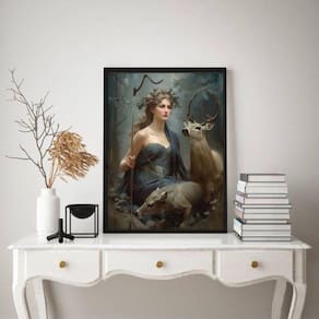 Quadro decorativo artemis- deusa da natureza 24x18cm - com vidro Moldura: madeira branca Informações do produto tire todas as suas dúvidas no descritivo abaixo: decoração para quarto, sala, cozinha, escritório, área gourmet e muito mais. Chega de paredes vazias medidas - cada peça tem 24x18cm a5 . Material do papel - papel fotográfico brilhante de altíssima resolução acabamento - todos os quadros são acompanhados de vidro para proteção da imagem. - moldura em madeira maciça na cor preta ou branca conforme produto escolhido e pendurador . - os quadros são embalados de forma segura com plástico bolha com camada dupla de acordo com o tamanho dos quadros. Garantia - garantia de 3 meses. Meu quadro chegou. Como posso fixá-lo Você precisa apenas de um martelo e um prego, pois os quadros já vão acompanhados de penduradores. Esta é a forma mais indicada. Como posso limpar meu quadro A limpeza é feita como um móvel comum da sua casa. Apenas um pano seco ou espanador são suficientes para tal Ean: 7895155362041