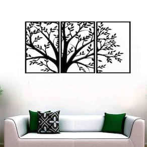 Quadro Decorativo Árvore 6Mm Vazado - Mdf TAMANHO & INSTALAÇÃO: Tamanho total: 122cm comprimento X 60cm altura Com espaçamento recomendado de 1 cm entre peças, Peças laterais: 40x60 cm | Peça central: 40x60 cm Espaçamento entre as peças: 1 cm A instalação é bem simples, não será preciso fazer sujeira furando a parede pois utilizamos o método bem prático para instalar, contém fita dupla face 3M no verso do quadro. LIMPEZA DO PRODUTO Para limpeza, utilize apenas um pano umedecido com água sem produtos químicos para garantir a durabilidade. ACABAMENTO Nossos produtos são fabricados em MDF com espessura de 6mm cortados a laser. Desta forma terá um produto com acabamento de alta qualidade. Bordas/laterais serão na cor preta feito com a própria máquina de corte a laser, dando acabamento perfeito. GARANTIA / EMBALAGEM Embalagem reforçada e segura para que receba seu produto em perfeito estado. Garantia de produto de qualidade ou seu dinheiro de volta.