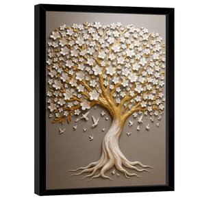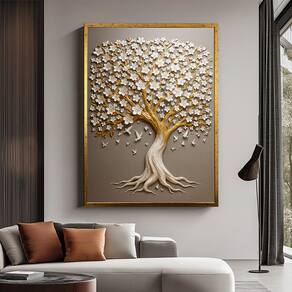 Quadro Decorativo Árvore Bela Moldura Dourada - 84x54cm -