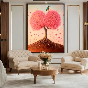 Quadro Decorativo Árvore do Amor Variação Moldura Branca - 84x54cm -