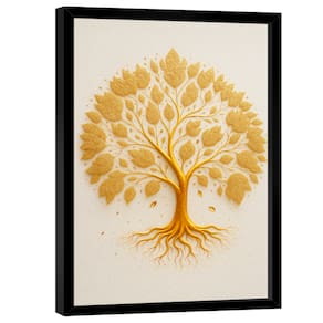 Quadro Decorativo Árvore do Ouro Moldura Dourada - 84x54cm -