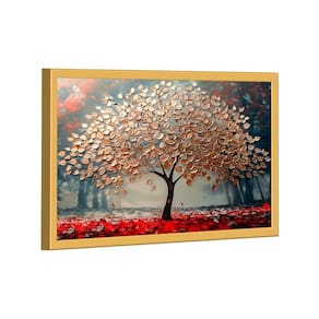 Quadro Decorativo Árvore Dourada com Lindas Folhas Moldura Dourada - 150x100cm -