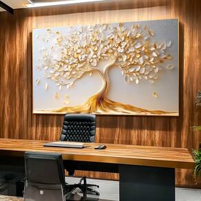 Quadro Decorativo Árvore Majestosa Estilo 3D Moldura Branca - 60x40cm -