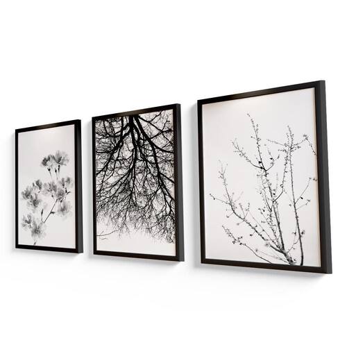 Quadro decorativo árvores preto branco minimalista moldura preta 60x40