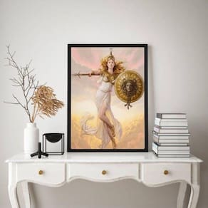 Quadro decorativo atena- deusa da sabedoria 24x18cm - com vidro Moldura: madeira branca Informações do produto tire todas as suas dúvidas no descritivo abaixo: decoração para quarto, sala, cozinha, escritório, área gourmet e muito mais. Chega de paredes vazias medidas - cada peça tem 24x18cm a5 . Material do papel - papel fotográfico brilhante de altíssima resolução acabamento - todos os quadros são acompanhados de vidro para proteção da imagem. - moldura em madeira maciça na cor preta ou branca conforme produto escolhido e pendurador . - os quadros são embalados de forma segura com plástico bolha com camada dupla de acordo com o tamanho dos quadros. Garantia - garantia de 3 meses. Meu quadro chegou. Como posso fixá-lo Você precisa apenas de um martelo e um prego, pois os quadros já vão acompanhados de penduradores. Esta é a forma mais indicada. Como posso limpar meu quadro A limpeza é feita como um móvel comum da sua casa. Apenas um pano seco ou espanador são suficientes para tal Ean: 7890974674320