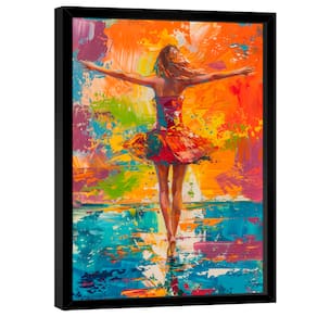 Quadro Decorativo Bailarina Estilo Pintura Moldura Preta - 180x105cm -