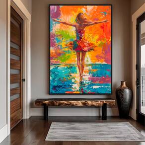Quadro Decorativo Bailarina Estilo Pintura Moldura Preta - 118x78cm -