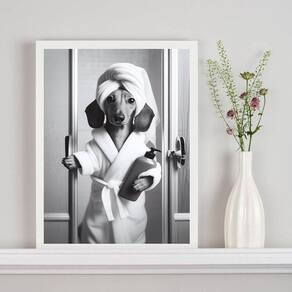 Quadro decorativo de banheiro - cachorrinha dachshund 33x24cm - com vidro Cor: moldura preta Informações do produto tire todas as suas dúvidas no descritivo abaixo: decoração para quarto, sala, cozinha, escritório, área gourmet e muito mais. Chega de paredes vazias medidas - cada peça tem 33x24cm a4 . Material do papel - papel fotográfico brilhante de altíssima resolução acabamento - todos os quadros são acompanhados de vidro para proteção da imagem. - moldura em madeira maciça na cor preta ou branca conforme produto escolhido e pendurador . - os quadros são embalados de forma segura com plástico bolha com camada dupla de acordo com o tamanho dos quadros. - de 3 meses. Meu quadro chegou. Como posso fixá-lo Você precisa apenas de um martelo e um prego, pois os quadros já vão acompanhados de penduradores. Esta é a forma mais indicada. Como posso limpar meu quadro A limpeza é feita como um móvel comum da sua casa. Apenas um pano seco ou espanador são suficientes para tal