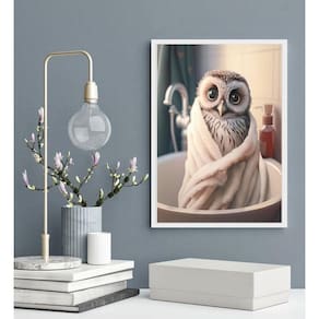 Quadro decorativo para banheiro corujinha 33x24cm - com vidro Moldura: madeira branca Informações do produto tire todas as suas dúvidas no descritivo abaixo: decoração para quarto, sala, cozinha, escritório, área gourmet e muito mais. Chega de paredes vazias medidas - cada peça tem 33x24cm a4 . Material do papel - papel fotográfico brilhante de altíssima resolução acabamento - todos os quadros são acompanhados de vidro para proteção da imagem. - moldura em madeira maciça na cor preta ou branca conforme produto escolhido e pendurador . - os quadros são embalados de forma segura com plástico bolha com camada dupla de acordo com o tamanho dos quadros. Garantia - garantia de 3 meses. Meu quadro chegou. Como posso fixá-lo Você precisa apenas de um martelo e um prego, pois os quadros já vão acompanhados de penduradores. Esta é a forma mais indicada. Como posso limpar meu quadro A limpeza é feita como um móvel comum da sua casa. Apenas um pano seco ou espanador são suficientes para tal