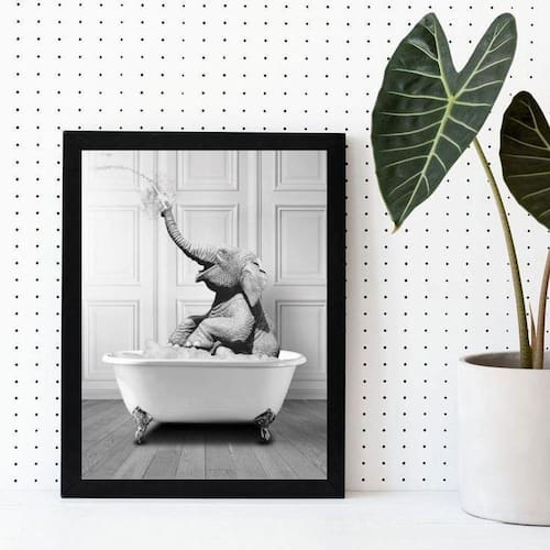 Quadro decorativo banheiro- elefante banheira 33x24cm Moldura: madeira branca Informações do produto tire todas as suas dúvidas no descritivo abaixo: decoração para quarto, sala, cozinha, escritório, área gourmet e muito mais. Chega de paredes vazias medidas - cada peça tem 33x24cm a4 . Material do papel - papel fotográfico brilhante de altíssima resolução acabamento - todos os quadros são acompanhados de uma película de acetato para proteção da imagem. - os quadros são embalados de forma segura com plástico bolha com camada dupla de acordo com o tamanho dos quadros. Garantia - garantia de 3 meses. Meu quadro chegou. Como posso fixá-lo Você precisa apenas de um martelo e um prego, pois os quadros já vão acompanhados de penduradores. Esta é a forma mais indicada. Caso prefira, você pode utilizar uma fita dupla face neste caso, sugerimos de alta qualidade para evitar que descole e seu quadro caia . Como posso limpar meu quadro A limpeza é feita como um móvel comum da sua casa. Apenas um pano seco ou espanador são suficientes para tal