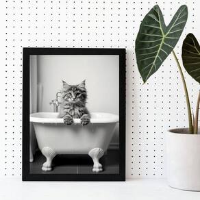 Quadro decorativo banheiro- gato banheira 45x34cm - com vidro