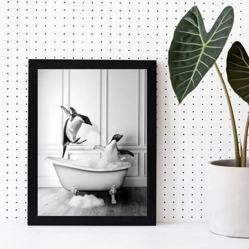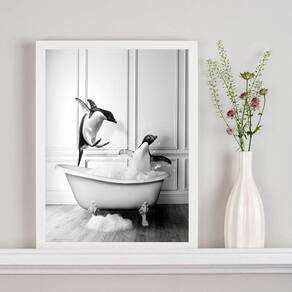 Quadro decorativo banheiro- pinguins banheira 24x18cm Moldura: madeira preta Informações do produto tire todas as suas dúvidas no descritivo abaixo: decoração para quarto, sala, cozinha, escritório, área gourmet e muito mais. Chega de paredes vazias medidas - cada peça tem 24x18cm a5 . Material do papel - papel fotográfico brilhante de altíssima resolução acabamento - todos os quadros são acompanhados de uma película de acetato para proteção da imagem. - os quadros são embalados de forma segura com plástico bolha com camada dupla de acordo com o tamanho dos quadros. - de 3 meses. Meu quadro chegou. Como posso fixá-lo Você precisa apenas de um martelo e um prego, pois os quadros já vão acompanhados de penduradores. Esta é a forma mais indicada. Caso prefira, você pode utilizar uma fita dupla face neste caso, sugerimos de alta qualidade para evitar que descole e seu quadro caia . Como posso limpar meu quadro A limpeza é feita como um móvel comum da sua casa. Apenas um pano seco ou espanador são suficientes para tal Marca: Não Informado