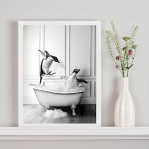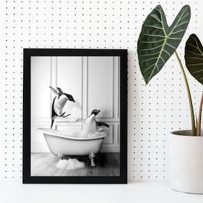 Quadro decorativo banheiro- pinguins banheira 45x34cm Moldura: madeira branca Informações do produto tire todas as suas dúvidas no descritivo abaixo: decoração para quarto, sala, cozinha, escritório, área gourmet e muito mais. Chega de paredes vazias. Medidas - cada peça tem 45x34cm a3 . Material do papel - papel fotográfico brilhante de altíssima resolução acabamento - todos os quadros são acompanhados de uma película de acetato para proteção da imagem. - os quadros são embalados de forma segura com plástico bolha com camada dupla de acordo com o tamanho dos quadros. Garantia - garantia de 3 meses. Meu quadro chegou. Como posso fixá-lo Você precisa apenas de um martelo e um prego, pois os quadros já vão acompanhados de penduradores. Esta é a forma mais indicada. Caso prefira, você pode utilizar uma fita dupla face neste caso, sugerimos de alta qualidade para evitar que descole e seu quadro caia . Como posso limpar meu quadro A limpeza é feita como um móvel comum da sua casa. Apenas um pano seco ou espanador são suficientes para tal Ean: 7897038794277