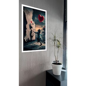Quadro decorativo banksy menina balão - 70x50cm Cor: moldura branca Informações do produto tire todas as suas dúvidas no descritivo abaixo: decoração para quarto, sala, cozinha, escritório, área gourmet e muito mais. Chega de paredes vazias medidas - cada peça tem 70x50cm . Material do papel - papel fotográfico brilhante de altíssima resolução acabamento - todos os quadros são acompanhados de vidro para proteção da imagem. - moldura em madeira maciça na cor preta ou branca conforme produto escolhido e pendurador. - os quadros são embalados de forma segura com plástico bolha com camada dupla de acordo com o tamanho dos quadros. - de 3 meses. Meu quadro chegou. Como posso fixá-lo Você precisa apenas de um martelo e um prego, pois os quadros já vão acompanhados de penduradores. Esta é a forma mais indicada. Como posso limpar meu quadro A limpeza é feita como um móvel comum da sua casa. Apenas um pano seco ou espanador são suficientes para tal Marca: Não Informado