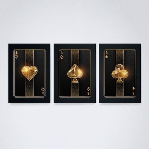 Não deixe de adquirir esse lindo quadro decorativo e transformar sua casa em um ambiente ainda mais encantador. Adicione um toque de elegância com as cartas douradas de baralho e crie um ambiente único e personalizado. Compre agora mesmo!