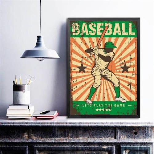 Quadro Decorativo Baseball Retrô 33X24Cm