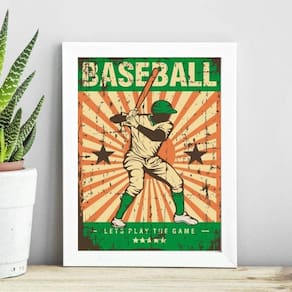Quadro decorativo baseball retrô 33x24cm Moldura: madeira branca Informações do produto tire todas as suas dúvidas no descritivo abaixo: decoração para quarto, sala, cozinha, escritório, área gourmet e muito mais. Chega de paredes vazias medidas - cada peça tem 33x24cm a4 . Material do papel - papel fotográfico brilhante de altíssima resolução acabamento - todos os quadros são acompanhados de uma película de acetato para proteção da imagem. - os quadros são embalados de forma segura com plástico bolha com camada dupla de acordo com o tamanho dos quadros. - de 3 meses. Meu quadro chegou. Como posso fixá-lo Você precisa apenas de um martelo e um prego, pois os quadros já vão acompanhados de penduradores. Esta é a forma mais indicada. Caso prefira, você pode utilizar uma fita dupla face neste caso, sugerimos de alta qualidade para evitar que descole e seu quadro caia . Como posso limpar meu quadro A limpeza é feita como um móvel comum da sua casa. Apenas um pano seco ou espanador são suficientes para tal