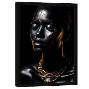 Quadro Decorativo Beleza Africana Moldura Dourada - 118x78cm -