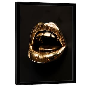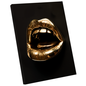 Quadro Decorativo Boca Dourada 3D Moldura Preta - 84x54cm -