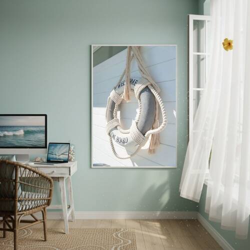 Quadro Decorativo Boia Salva Vidas-70x50cm - Cor: Moldura Branca