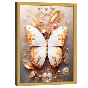 Quadro Decorativo Borboleta e Enfeites Moldura Preta - 118x78cm -