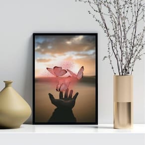 Quadro decorativo borboletas mágicas rosa 24x18cm Moldura: madeira preta Informações do produto tire todas as suas dúvidas no descritivo abaixo: decoração para quarto, sala, cozinha, escritório, área gourmet e muito mais. Chega de paredes vazias medidas - cada peça tem 24x18cm a5 . Material do papel - papel fotográfico brilhante de altíssima resolução acabamento - todos os quadros são acompanhados de uma película de acetato para proteção da imagem. - os quadros são embalados de forma segura com plástico bolha com camada dupla de acordo com o tamanho dos quadros. Garantia - garantia de 3 meses. Meu quadro chegou. Como posso fixá-lo Você precisa apenas de um martelo e um prego, pois os quadros já vão acompanhados de penduradores. Esta é a forma mais indicada. Caso prefira, você pode utilizar uma fita dupla face neste caso, sugerimos de alta qualidade para evitar que descole e seu quadro caia . Como posso limpar meu quadro A limpeza é feita como um móvel comum da sua casa. Apenas um pano seco ou espanador são suficientes para tal Ean: 7898346270217