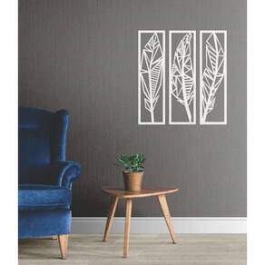 Quadro Decorativo Branco Mdf Folhas De Bananeira 40X20Cm