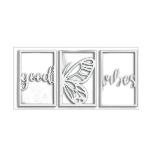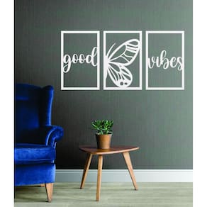 Quadro Decorativo Branco Mdf Good Vibes 40X20Cm