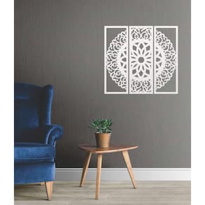 Quadro Decorativo Branco Mdf Mandala Arabesco 40X20Cm