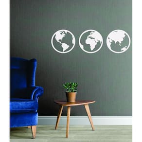 Quadro Decorativo Branco Mdf Trio Mapa Mundi 40X20Cm