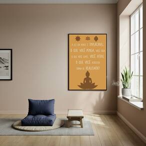 Quadro Decorativo Budista com Frase Motivacional - 70x50cm - Cor: Moldura Preta