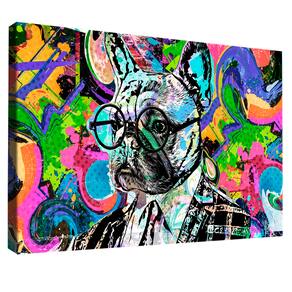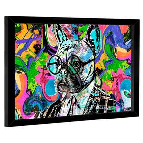 Quadro Decorativo Buldogue Pop Art Moldura Preta - 84x54cm -