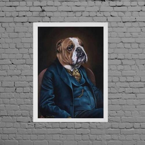 Quadro Decorativo Bulldog De Terno 24X18Cm