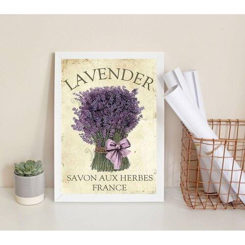 Especificações técnicas: - Título: Quadro Decorativo Buquê De Lavanda - Medidas: 33x24cm A4 - Material do papel: Papel fotográfico brilhante de altíssima resolução - Moldura: Madeira branca - Vidro para proteção da imagem - Pendurador incluso - Garantia de 3 meses