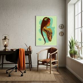 Quadro Decorativo Cabocla Jupira - 70x50cm - Cor: Moldura Branca