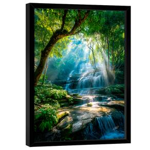 Quadro Decorativo Cachoeira Raios de Luz Moldura Preta e Vidro - 118x78cm -