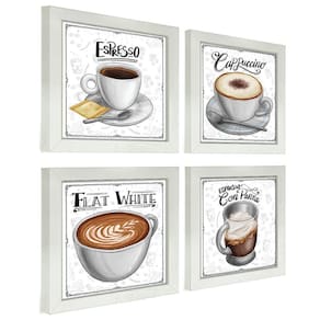 Quadro Decorativo Café Expresso Padaria Cozinha 12X12Cm 2 Título Moldura Branca