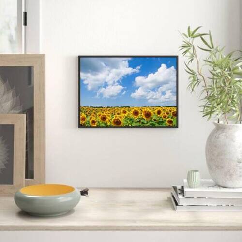 Com o Quadro Decorativo da Quadros On-Line você transforma a decoração do seu ambiente, com beleza e bom gosto. Preencha aquela parede vazia com um quadro de alta qualidade, papel fotográfico brilhante de altíssima resolução e moldura em madeira maciça. Para maior proteção, a peça ainda conta com uma película de acetato. Características: - Papel fotográfico brilhante de altíssima resolução - Película de acetato para proteção da imagem - Moldura em madeira maciça - Pendurador móvel que pode ser retirado facilmente - Pode ser fixado com fita dupla face Especificações técnicas Marca: Quadros On-Line Modelo: Campo De Girassóis Material: Papel fotográfico brilhante Acabamento: Película de acetato Moldura: Madeira Cor moldura: Preto Tamanho: 45 x 34 cm A3 Fixação: Prego ou fita dupla face de alta qualidade Acompanha pendurador: Sim : 3 meses Dica de limpeza A limpeza é feita como um móvel comum da sua casa. Apenas um pano seco ou espanador são suficientes para tal. Marca: Não Informado