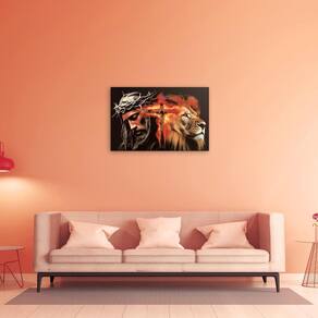 Este quadro impressionante apresenta uma imagem poderosa de Jesus Cristo e do Leão de Judá, trazendo uma forte mensagem de fé e esperança. Com dimensões de 60x40cm, ele é perfeito para decorar ambientes religiosos, salas de oração ou qualquer espaço que precise de uma inspiração espiritual.
