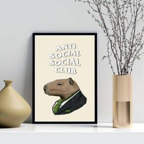 Quadro decorativo capivara anti social 24x18cm Moldura: madeira preta Informações do produto tire todas as suas dúvidas no descritivo abaixo: decoração para quarto, sala, cozinha, escritório, área gourmet e muito mais. Chega de paredes vazias medidas - cada peça tem 24x18cm a5 . Material do papel - papel fotográfico brilhante de altíssima resolução acabamento - todos os quadros são acompanhados de uma película de acetato para proteção da imagem. - os quadros são embalados de forma segura com plástico bolha com camada dupla de acordo com o tamanho dos quadros. Garantia - garantia de 3 meses. Meu quadro chegou. Como posso fixá-lo Você precisa apenas de um martelo e um prego, pois os quadros já vão acompanhados de penduradores. Esta é a forma mais indicada. Caso prefira, você pode utilizar uma fita dupla face neste caso, sugerimos de alta qualidade para evitar que descole e seu quadro caia . Como posso limpar meu quadro A limpeza é feita como um móvel comum da sua casa. Apenas um pano seco ou espanador são suficientes para tal Ean: 7892516227414