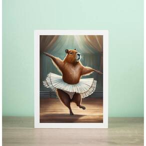 Quadro decorativo capivara bailarina 33x24cm Cor: moldura branca Informações do produto tire todas as suas dúvidas no descritivo abaixo: decoração para quarto, sala, cozinha, escritório, área gourmet e muito mais. Chega de paredes vazias medidas - cada peça tem 33x24cm a4 . Material do papel - papel fotográfico brilhante de altíssima resolução acabamento - todos os quadros são acompanhados de uma película de acetato para proteção da imagem. - os quadros são embalados de forma segura com plástico bolha com camada dupla de acordo com o tamanho dos quadros. Garantia - garantia de 3 meses. Meu quadro chegou. Como posso fixá-lo Você precisa apenas de um martelo e um prego, pois os quadros já vão acompanhados de penduradores. Esta é a forma mais indicada. Caso prefira, você pode utilizar uma fita dupla face neste caso, sugerimos de alta qualidade para evitar que descole e seu quadro caia . Como posso limpar meu quadro A limpeza é feita como um móvel comum da sua casa. Apenas um pano seco ou espanador são suficientes para tal Ean: 7891234545466