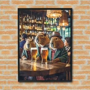 Quadro Decorativo Capivaras No Buteco - 70x50cm - Cor: Moldura Branca
