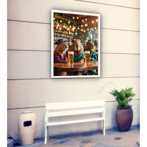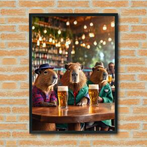 Quadro Decorativo Capivaras Tomando Cerveja - 70x50cm - Cor: Moldura Preta
