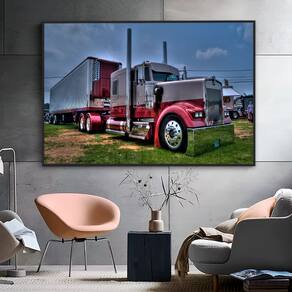 Quadro Decorativo Carreta Americana Moldura Branca e Vidro - 150x100cm -