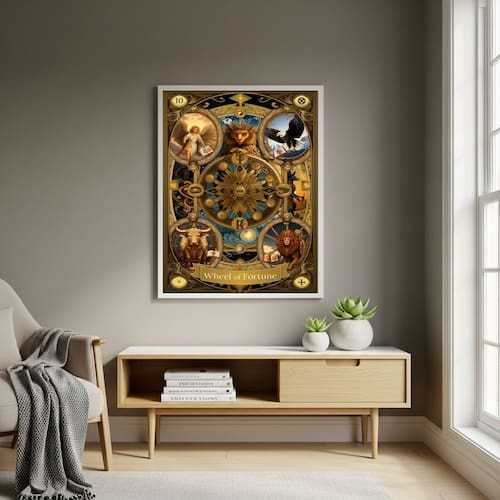 Quadro Decorativo Carta de Tarô A Roda da Fortuna - 70x50cm - Cor: Moldura Branca
