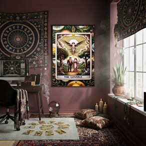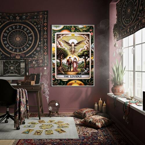 Quadro Decorativo Carta de Tarô Os Enamorados - 70x50cm - Cor: Moldura Branca